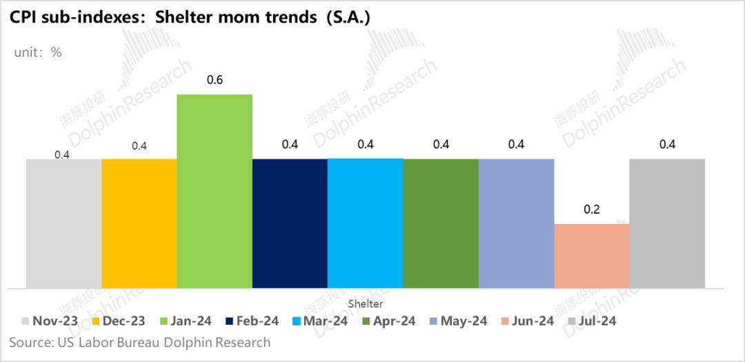 6月的数据让人担心打通胀是否打过头了,而7月随着居住成本物价再次回归到了0.4%的月环比,并推动核心CPI从0.06%回升到了0.17%的安全范围内——连续三个月的0.2%核心物价月环比增长,应该给了美联储足够的信心去降息了。