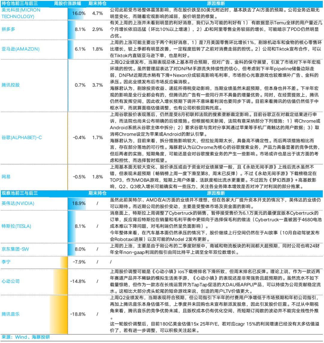 上周海豚君所所关注的股票池涨跌幅较大的个股,海豚君解释如下: