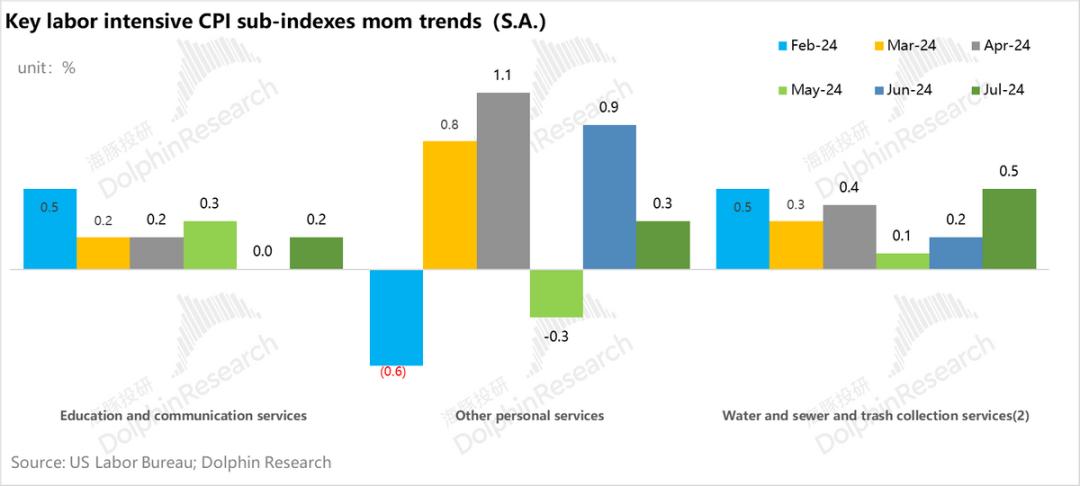 而这里相对不确定的,在海豚君看来,仍然是“人力成本”含量较重的一些物价板块,比如说教育、其他个人服务、垃圾清运等。