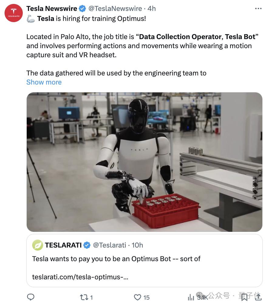 马斯克的特斯拉最新招聘消息亮了,招特斯拉机器人数据收集操作员(Data Collection Operator, Tesla Bot)。