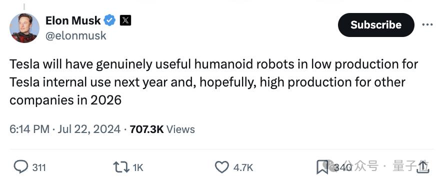 明年开始小批量生产真正有用的人形机器人供公司内部使用,希望到2026年能实现大规模生产,供应其他公司使用。