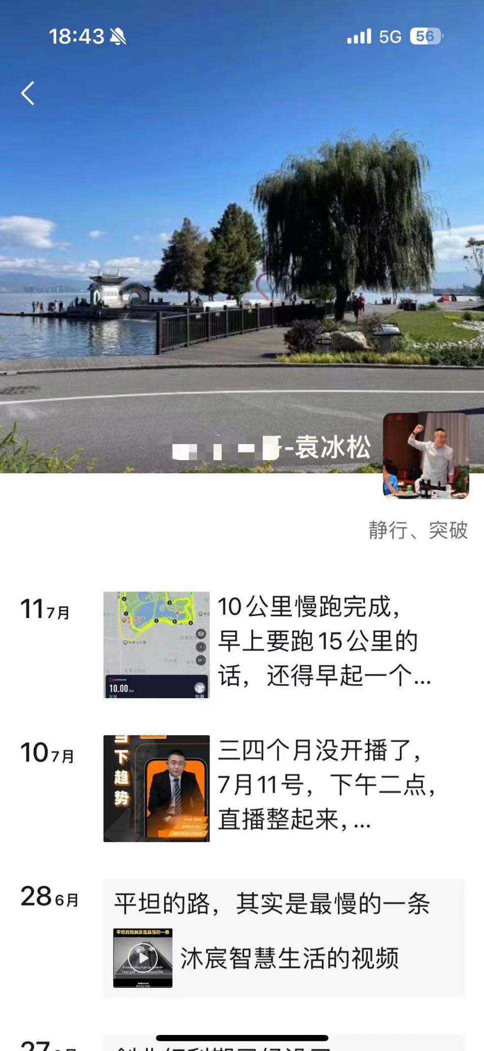 而据蓝鲨消费从知情人士中得知的消息,袁冰松最新发布的一条朋友圈消息是晒他完成“10公里慢跑”,时间是在7月11日(见截图)。袁冰松“失联后复出”,这条消息似乎扑朔迷离。
