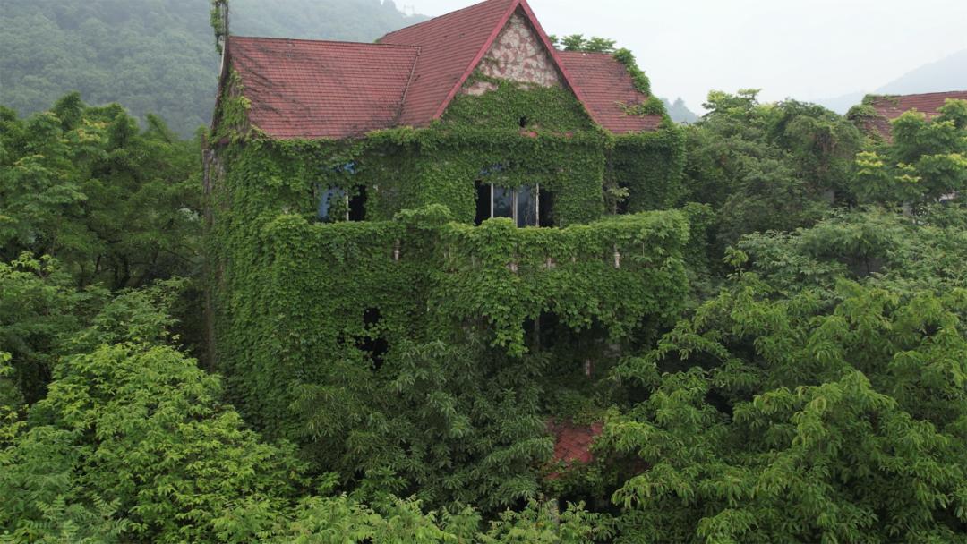 久无人居住的房屋外墙上爬满了藤蔓,遮住了窗户。(图/受访者供图)