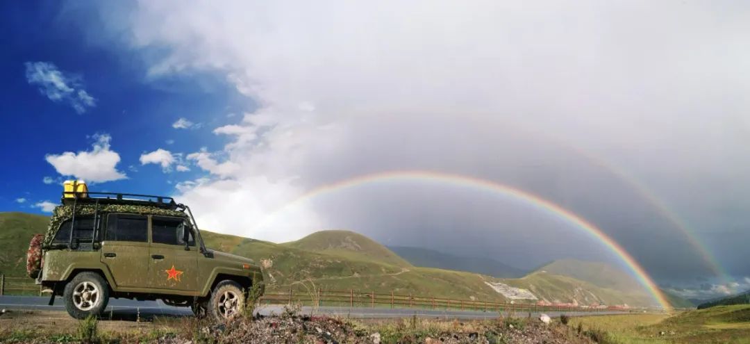 第一次进藏,颖队长他们在路上碰到了彩虹。(图/受访者供图)