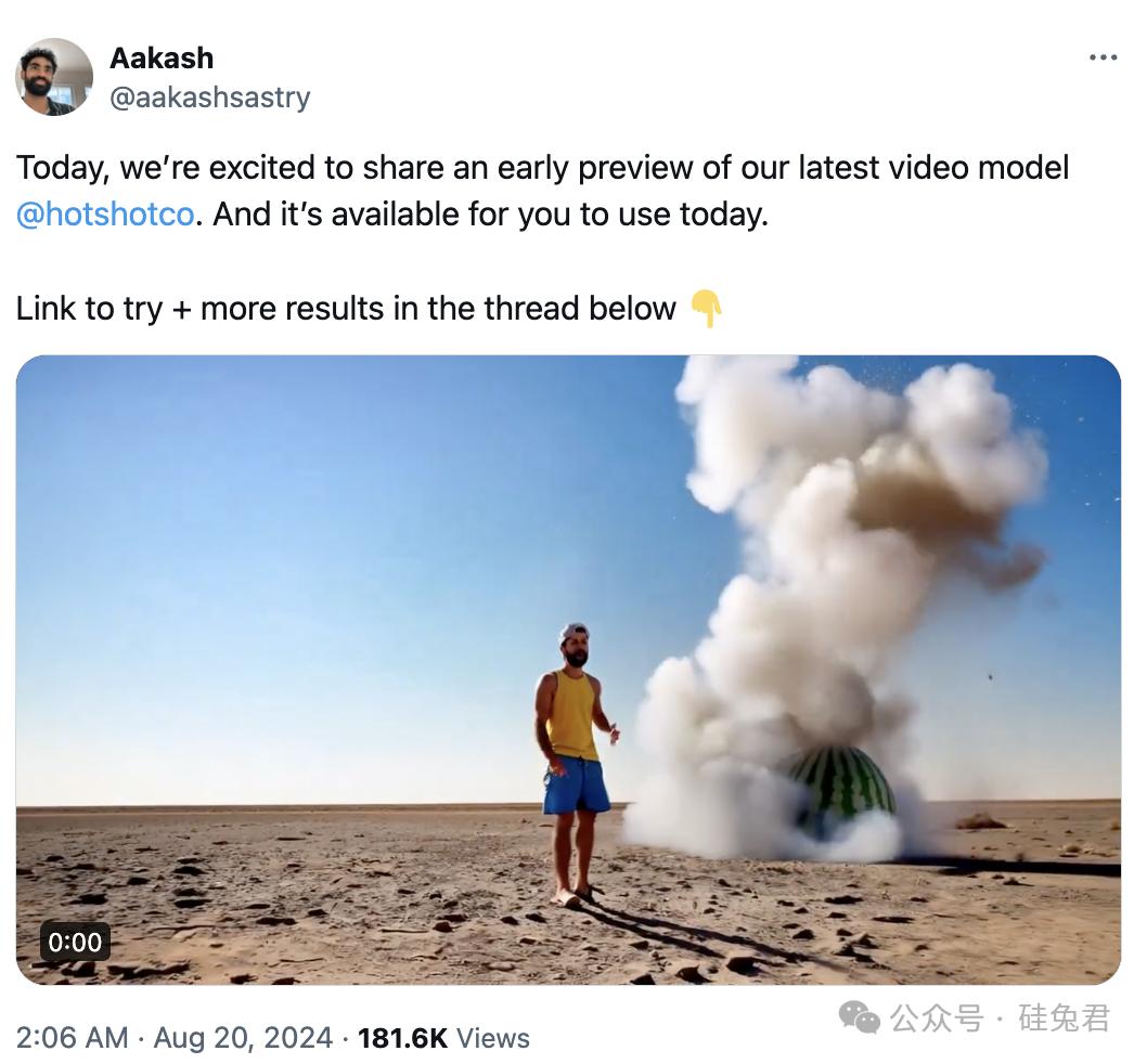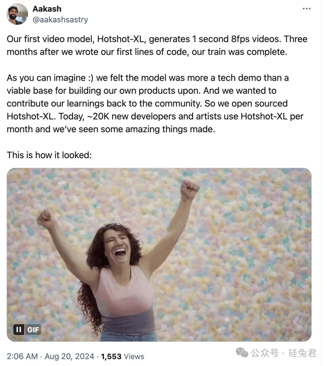 第二款视频模型Hotshot Act-One 可生成3秒8fps的视频,训练耗时5个月。