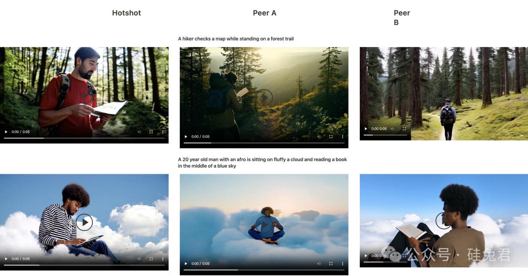 Hotshot给出了一些Hotshot文生视频与其他同行对比的相关案例。