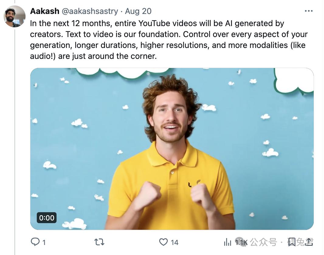 Hotshot的创始人Sastry预测,AI生成内容可能在未来12个月内成为数字媒体的主流,尤其是在YouTube视频制作方面,创作者将能够完全控制从文本到视频,甚至音频的生成过程。
