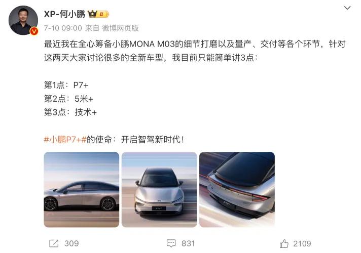 小鹏 MONA M03 上市,小鹏 P7+四季度推出,下半年将进入更多右舵市场...