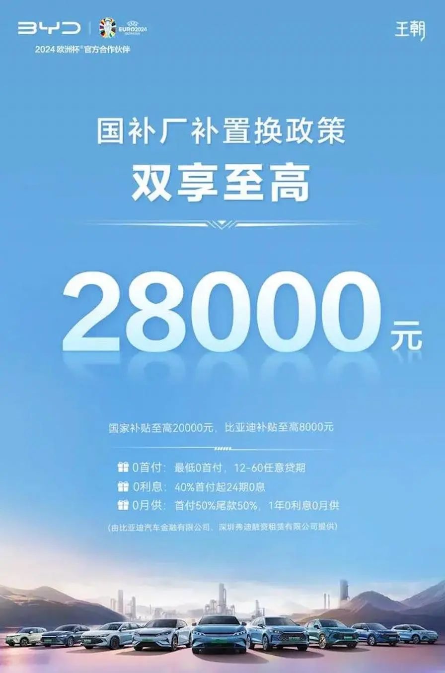 以比亚迪为例消费者购买比亚迪王朝系列至高补贴8000元,合计至高补贴2.8万元。补贴涉及汉家族、唐家族、元UP、秦PLUS系列以及宋L EV等车型。此外,比亚迪王朝网和海洋网还同步推出了相应的金融政策。