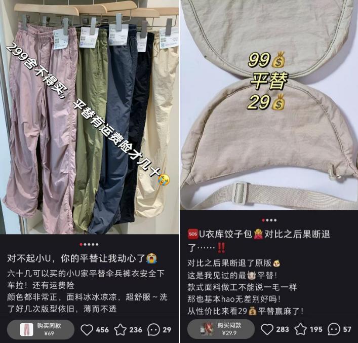 小红书平台上有关“优衣库平替店铺推荐”的笔记高达8万+,不少小红书商户也打着“优衣库平替”的名号卖出上万单。除此之外,许多消费者也选择在1688优衣库代工厂直接购买,“认准源头供应”。