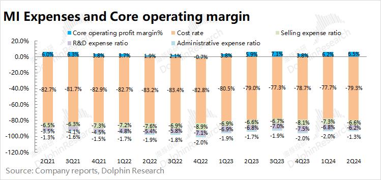 2024年第二季度小米三项费用合计125.8亿元,同比增加23.6 %。公司本季度费用端的增加,主要来自于三项费用均有不同程度提升。