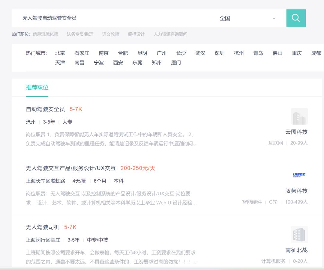 现在打开招聘软件,搜索“自动驾驶”“自动驾驶安全员”等关键词,会发现相关的招聘需求较前几年已经明显地多了起来,其中,萝卜快跑更是明确表示优先招聘具备网约车司机经验的候选人。
