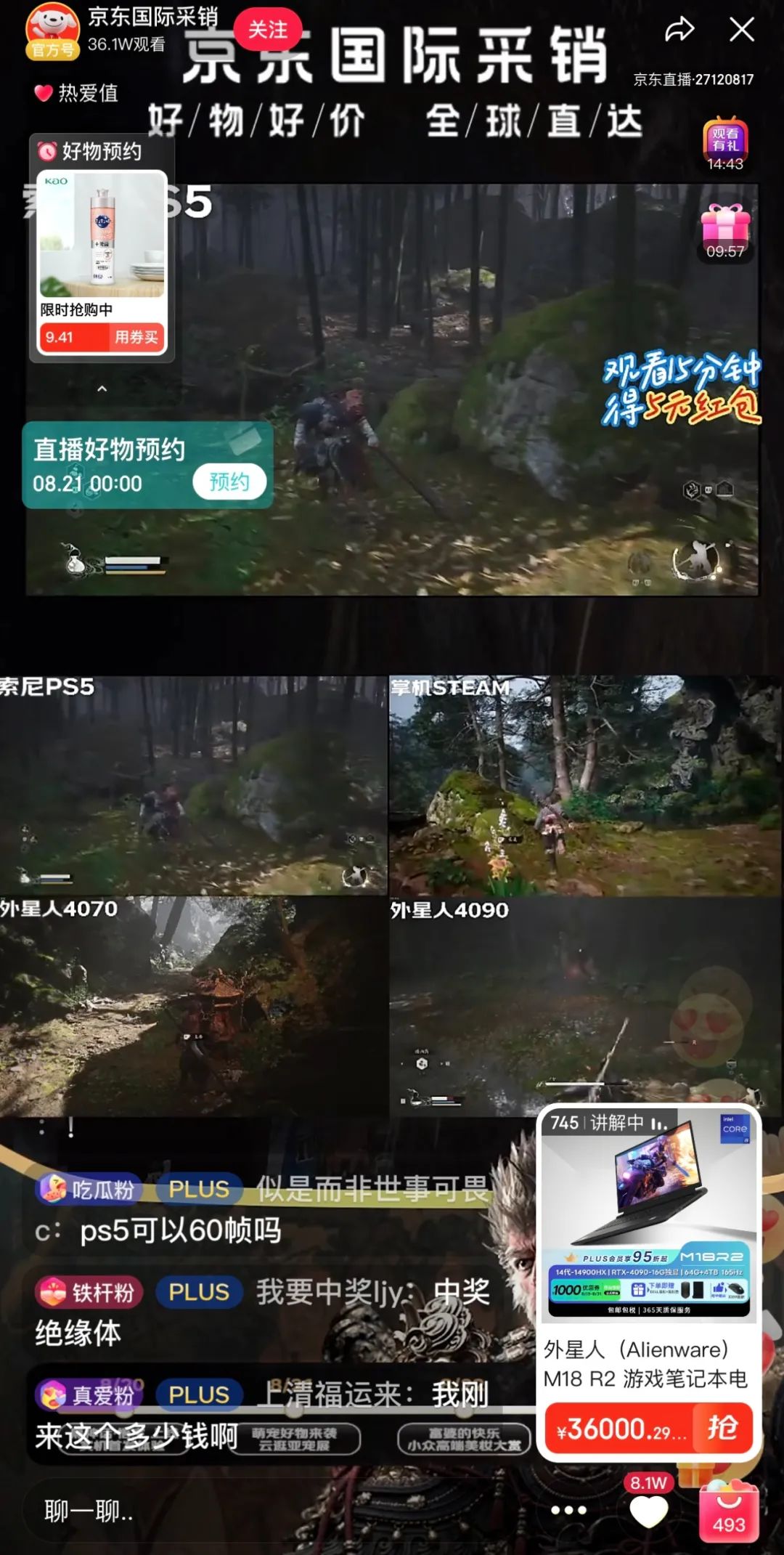 记者注意到,游戏正式上线后,与B站、抖音等内容平台主播通关游戏直播一样,京东国际、京东电竞等直播间内,也通过试玩的方式开卖游戏相关产品。