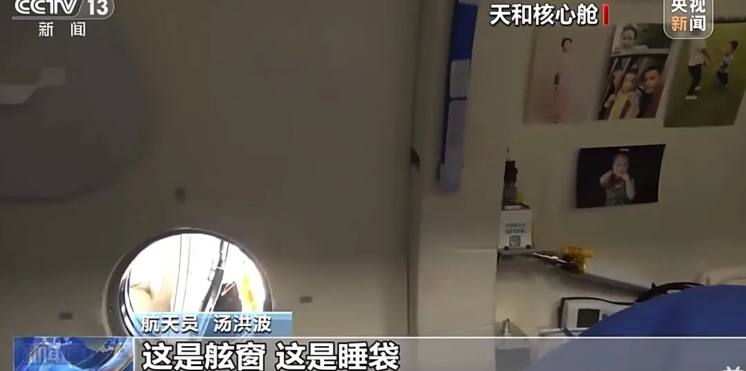 到了休息舱里面,不少航天员还在墙壁上贴了照片,咋说呢,有点像我在大学寝室里贴海报一样,真的很有生活气息。