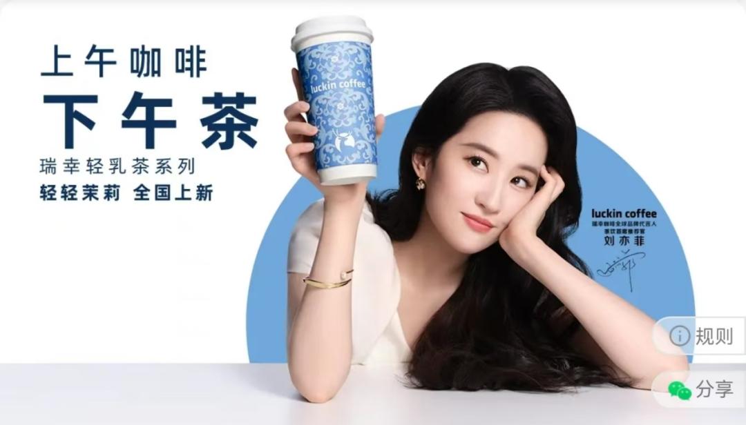 瑞幸此次请来刘亦菲代言,并以“上午咖啡下午茶”的口号来培养用户认知。特别值得一提的是,瑞幸这款产品无论外观还是配料,都容易令人联想到另一款现象级产品——霸王茶姬的当家花旦“伯牙绝弦”。此外,瑞幸在此基础上不忘自己的优势,同时推出了含咖啡液和不含咖啡液两个版本。根据网络流传的信息,瑞幸这款轻轻茉莉似乎首周销量就已突破1100万杯,如果消息属实,将是今年首周最成功的新品。