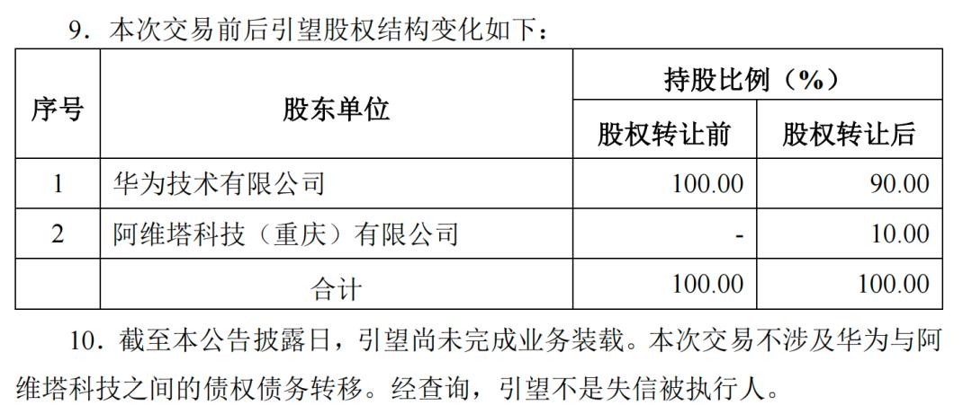 但此次公告显示,引望尚未完成业务装载。具体时间要等转让方(即华为)收到第一笔转让价款之后,开始启动。