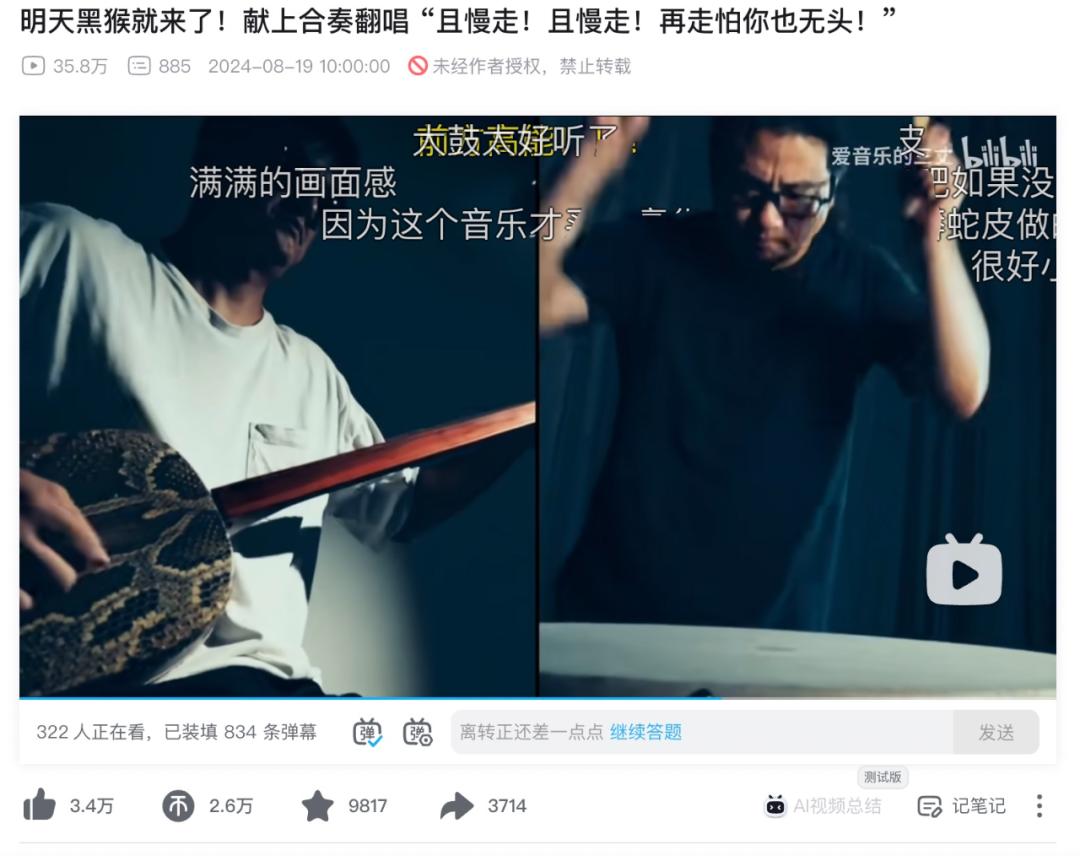 开服前的8月19日,被B站网友们戏称为“赛博除夕”。各个区的UP主们,堪称八仙过海各显神通,各自用自己的“才艺”迎接《黑神话:悟空》。