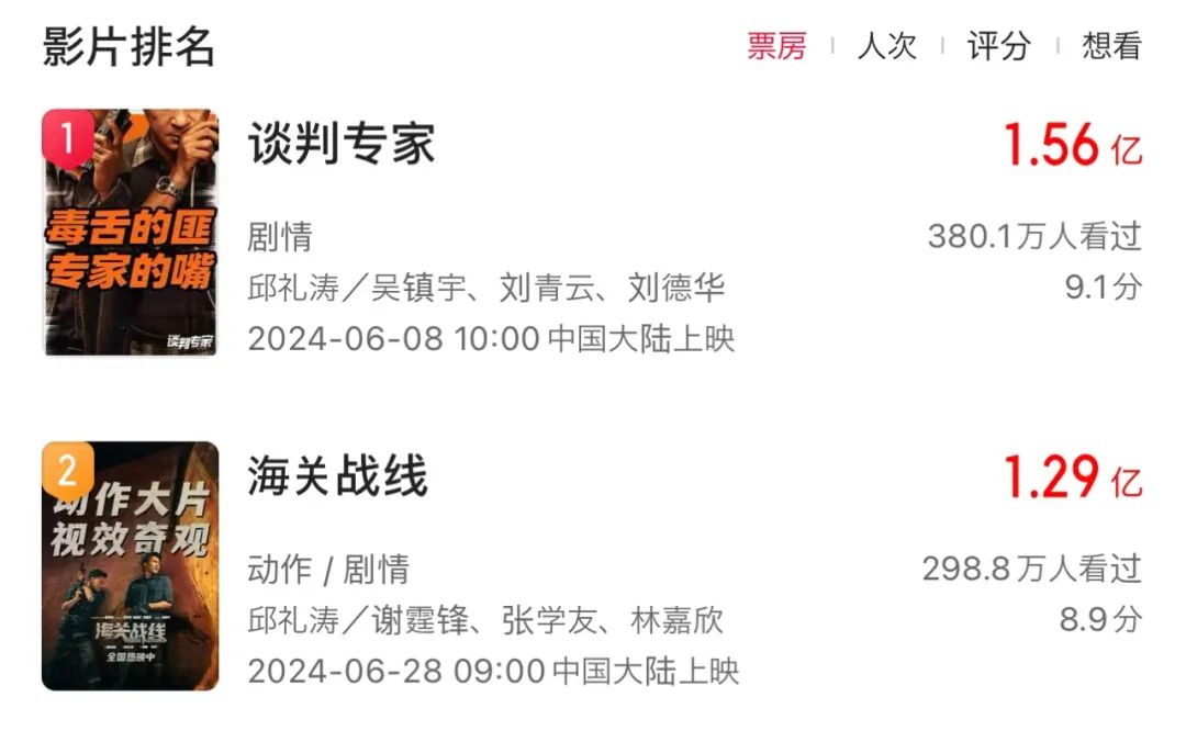 港片在内地市场经历过漫长的祛魅过程,伴随主创阵容、影片内容同质化日渐加重,内地观众对港片已经进入严重审美疲劳阶段。暑期档曾经港片曾经的舒适区档期,特殊三年中也曾涌现《怒火·重案》《神探大战》等一批高票房项目,但现在也已经不可同日而语。在今年暑期档上映的《海关战线》《谈判专家》两部港片均平淡收官。
