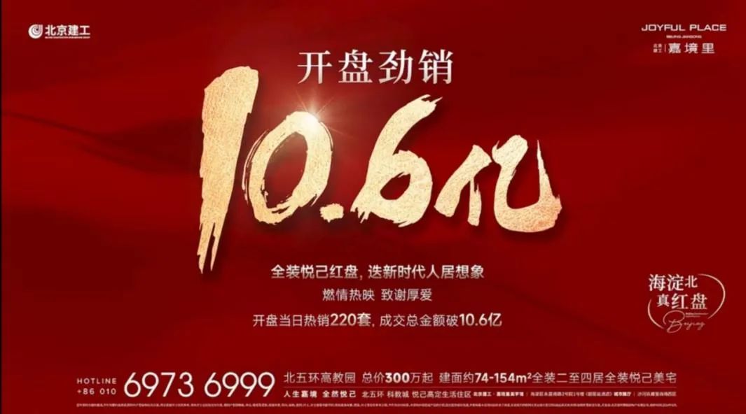 据北京建工嘉境里官微消息,北京建工·嘉境里于6月23日开盘当日,首开斩获10.6亿元。