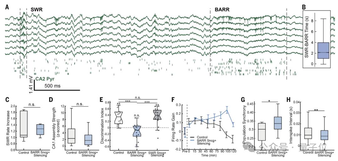 这些CCK+篮状细胞在BARR期间特别活跃,并且对CA1区域的神经元活动有抑制作用。那些在学习和SWR期间更加活跃的神经元,在BARR期间会被更强烈地抑制。