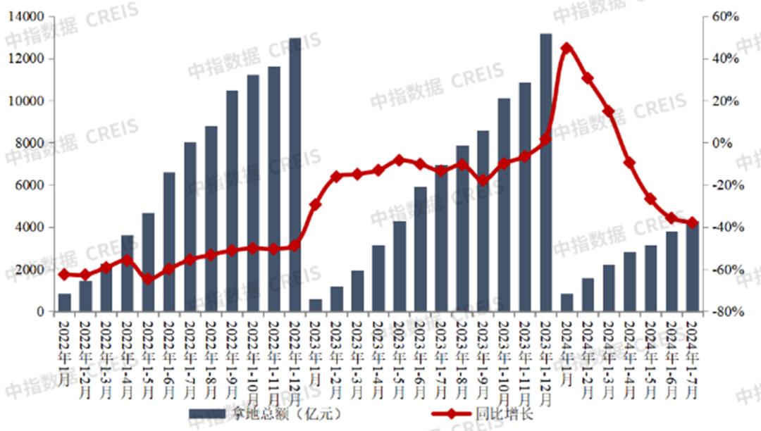 不久前,中指院发布了今年前7月房企的拿地统计数据,TOP100企业拿地总额4307亿元,同比下滑38.0%,相较1-6月降幅增加2.2%。