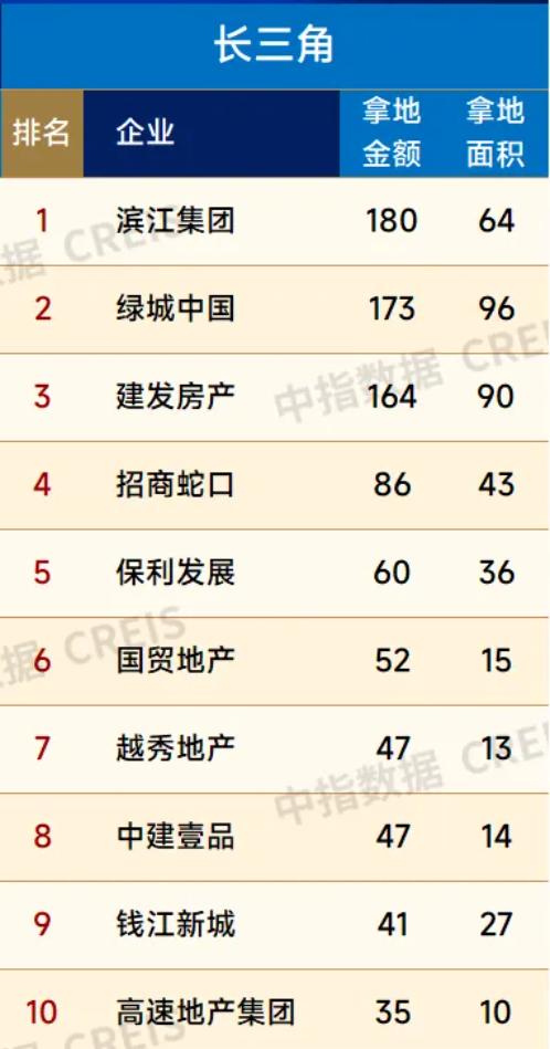 虽然长三角的蛋糕很大,但从拿地情况,地方龙头房企便占据半壁江山。