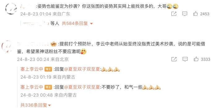 在微博发布后,李云中迎来了汹涌的评论和私信,23日午间,他最新发文称,并没有蹭热度,也没有质疑抄袭。
