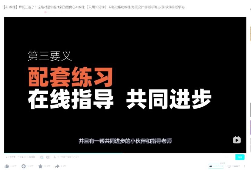 以“AI”关键词为例,我们发现在B站网页版搜索的首个内容竟是UP主@GenJi是真的想教会你于2021年初发布的AI教程。截至发稿前,该视频内容播放量379.2万、点赞量16.6万、投币量16.8万,其长尾效应可见一斑。