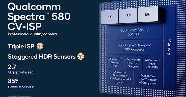 这种“分组件”的命名方式有两个好处,一是可以清楚地显示同一代产品之间,在技术和定位上的关联性与高低之分。比如骁龙660的ISP就是Spectra 160,一看就知道与骁龙835是同一代设计。二是能够明确地让消费者比较不同代次产品之间,具体在功能模组上有无更新,以及更新的程度。比如骁龙888的ISP是Spectra 580,那么它就明显与骁龙835定位相同、但架构先进了4个代次。