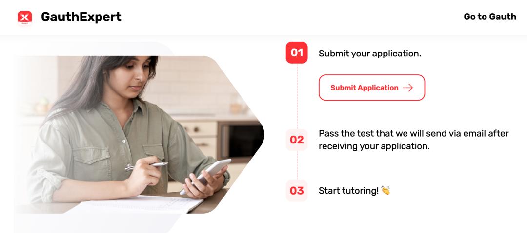 Gauth这套系统,其实就有点类似美团、滴滴,并不需要自营导师团队,而是面向社会招募通过认证的真人导师,这些导师的工作不限时不限地方,上线接单多劳多得,只要能力够,每个月赚个1500刀零花钱不在话下。
