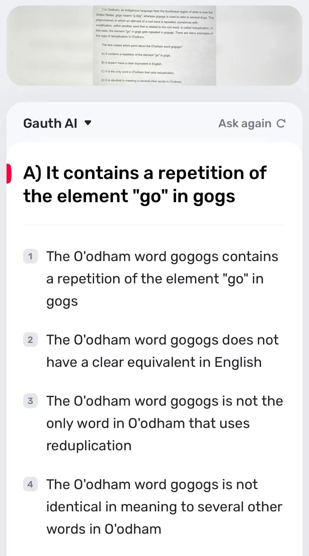 我到网上找了今年3月份北美SAT真题简单测试了一下,在做阅读理解题的时候,Gauth不仅给出了正确答案,还给出了详细的答题解释,逻辑清晰、层次分明,很好地帮助学生理解答案背后的“为什么”。