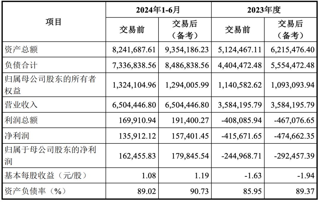 本次交易后,赛力斯2023年的净利润将由-41.57亿元变更为-47.47亿元,归属于母公司股东的净利润将由-24.50亿元变更为-29.25亿元,基本每股收益将由-1.63元/股变更为-1.94元/股;今年上半年的净利润将由13.59亿元变更为15.74亿元,归属于母公司股东的净利润将由16.25亿元变更为17.98亿元,基本每股收益将由1.08元/股变更为1.19元/股。