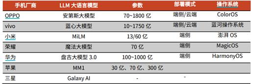 图:不同AI手机厂商端侧模型参数对比 来源:光大证券