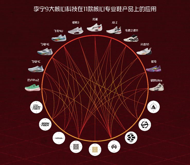 截至目前,李宁集团已经形成了碳核芯、最速曲线系统、李宁弜、超䨻、GCU、极限䨻丝的六大核心科技,构建了中底、大底、鞋面、结构等全方位的科技平台。李宁公司也指出,过去10年间,单品牌研发投入累计超过30亿元,今年上半年的研发投入增速大于营收增速。