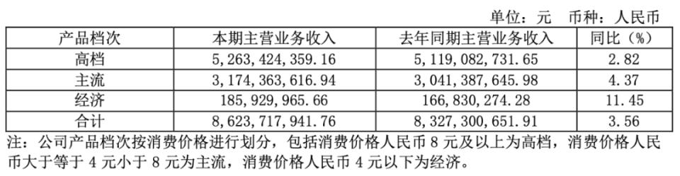 从重庆啤酒半年报业绩数据来看,虽然经济档产品营收占比只有2.16%,但其上半年营收增速最高。数据显示,经济档产品比上年同期增长11.45%;而高档和主流的增速分别只有2.82%和4.37%。