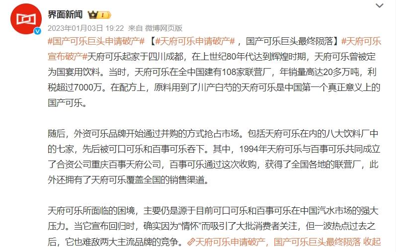 除此之外,同处川渝地区,与百事可乐合资的天府可乐也是一个典型的例子。
