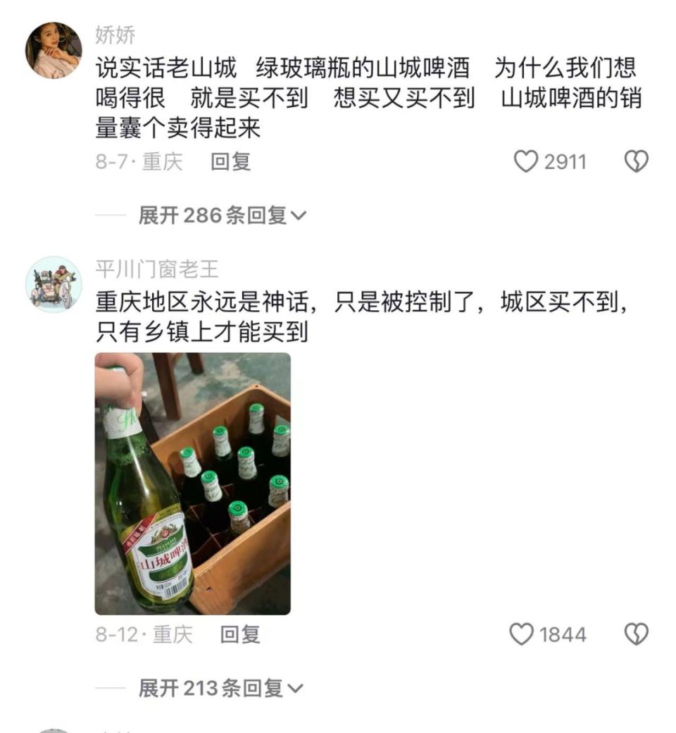 山城啤酒与重启啤酒的纠纷也引发了不少网友热议,尤其是很多重庆的网友纷纷发帖怀念曾经的“老山城大绿棒”;有网友表示,“绿玻璃瓶的山城啤酒现在很难买到”,“城区买不到,只有乡镇上才能买到。”