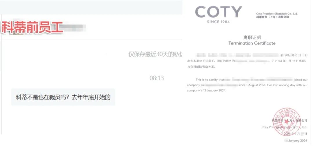 据前科蒂员工 王鸥 称,约莫今年1月,还有几年便达到退休年龄的她在出差途中被科蒂突然约谈,随之成为了裁员大潮中的一员。