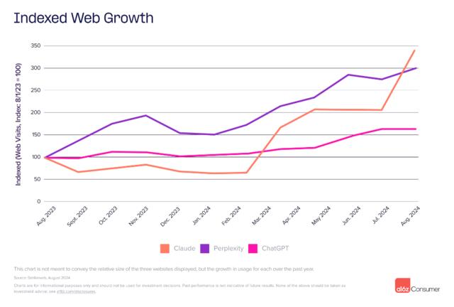 在基于Web的AI应用、基于移动设备的AI应用这两个榜单上,ChatGPT第三次成为第1名,但是,成为“最佳消费者助手”产品的竞争正在升温。