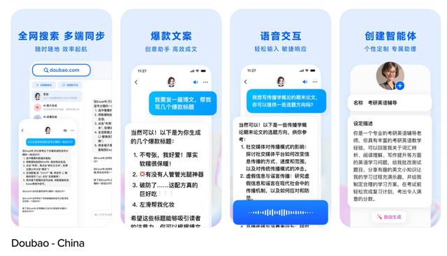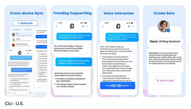 此外,照片和视频编辑Hypic(第19名)、助理 Cici(第34名)也是字节跳动的产品,在移动设备上,Cici是英文版的Doubao。