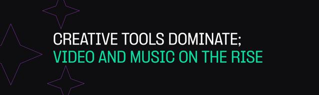 创意工具不断吸引着消费者。名单上52%的公司专注于跨领域(图像、视频、音乐、语音等)的内容生成或编辑。