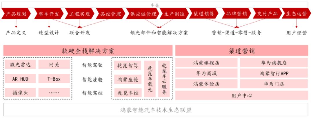 在该模式下,华为并不仅是传统的车企供应商,还作为智能汽车的开发者和营销者,深入整车设计与开发,实现更多智能汽车零部件和解决方案的搭载,侧重生态整合和销售网络的共享。华为不仅以汽车零部件和解决方案形式获得收入,还参与到渠道销售环节并以销售分成的形式获得盈利。