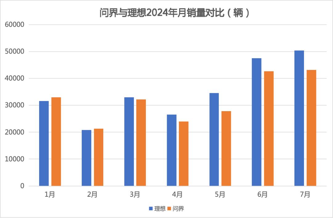 先是今年7月,根据终端数据,问界品牌交付43189辆,相比6月环比微增1%;但理想汽车7月销量增至50360辆,环比增加6%,两者差距拉大。