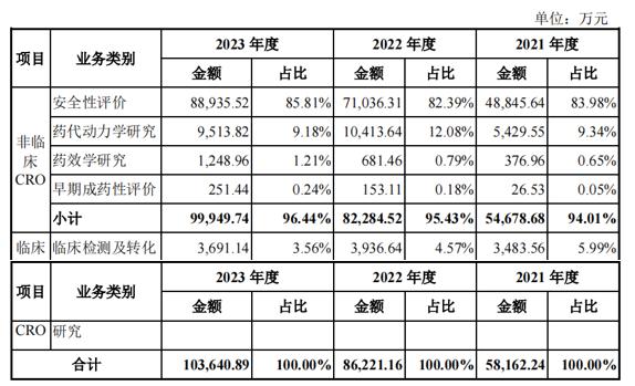 非临床CRO业务是公司业务发展的基础,营收占比超90%;其中非临床安全性评价占到8成以上。