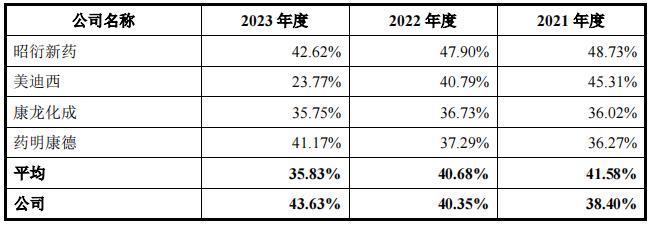 而昭衍新药与益诺思的情况相反,昭衍新药报告期内毛利率逐年下滑,招股书中解释称,主要在于昭衍新药生物资产按公允价值计量,按照市价进行成本结转。昭衍新药2022 年度实验用猴市价较 2021 年度上涨,生产成本承压,因此毛利率有所下降。2023 年度毛利率下滑较多,主要系市场竞争加剧,订单价格下降叠加实验用猴成本仍处于相对较高水平,因此毛利率进一步下降。