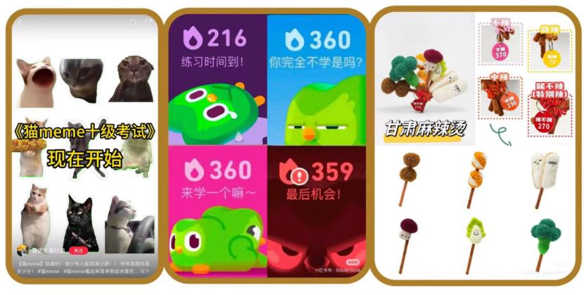 我们还应该意识到,品牌做“发疯营销”也是有边界的,用力过猛可能会变成“东施效颦”、引发消费者反感,因此,一个绝对正确的“动机”就尤为重要。“现煮”的“麻辣烫”在博物馆内之所以大卖,是其展现了中华美食的制作过程,充满趣味性,疗愈成年人内心;“猫meme”营销为什么“百试百灵”,是因为其充满了年轻人给企业打工、被公司“压榨”时的“自我开解”的心态;至于这些IP营销里边“疯”得最厉害的多邻国,它可以“撒泼打滚”,可以“不择手段”,也是由于其拥有一个绝对正确的“动机”——劝用户学习。