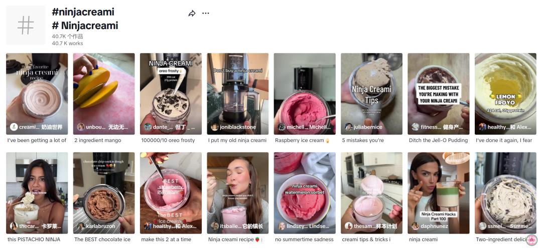 顺着视频标签点进#Ninjacreami的TikTok话题,你会发现该话题下竟有超过4万个视频,其中大部分均为普通用户发布,并非该品牌官方投放的宣传视频。很显然,这款冰淇淋机备受海外用户青睐。
