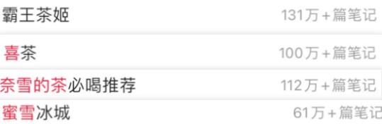 截至目前,仅仅在小红书上关于霸王茶姬的笔记有131万篇,喜茶有100万篇,奈雪的茶112万篇,蜜雪冰城61万篇。