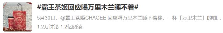 在微博“霸王茶姬 失眠”“霸王茶姬回应喝万里木兰睡不着”话题阅读量均达上亿。