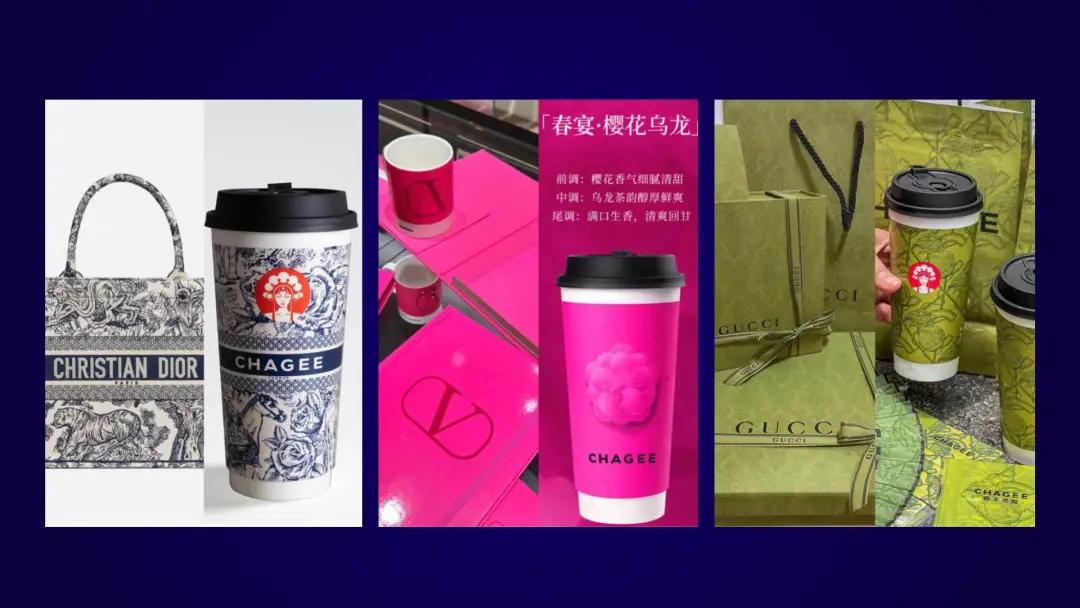 霸王茶姬结合Dior、LV的设计,让用户觉得进入这个店面、手里拿的这个纸杯,瞬间有了高级感,这就是奢侈品设计元素带来的。